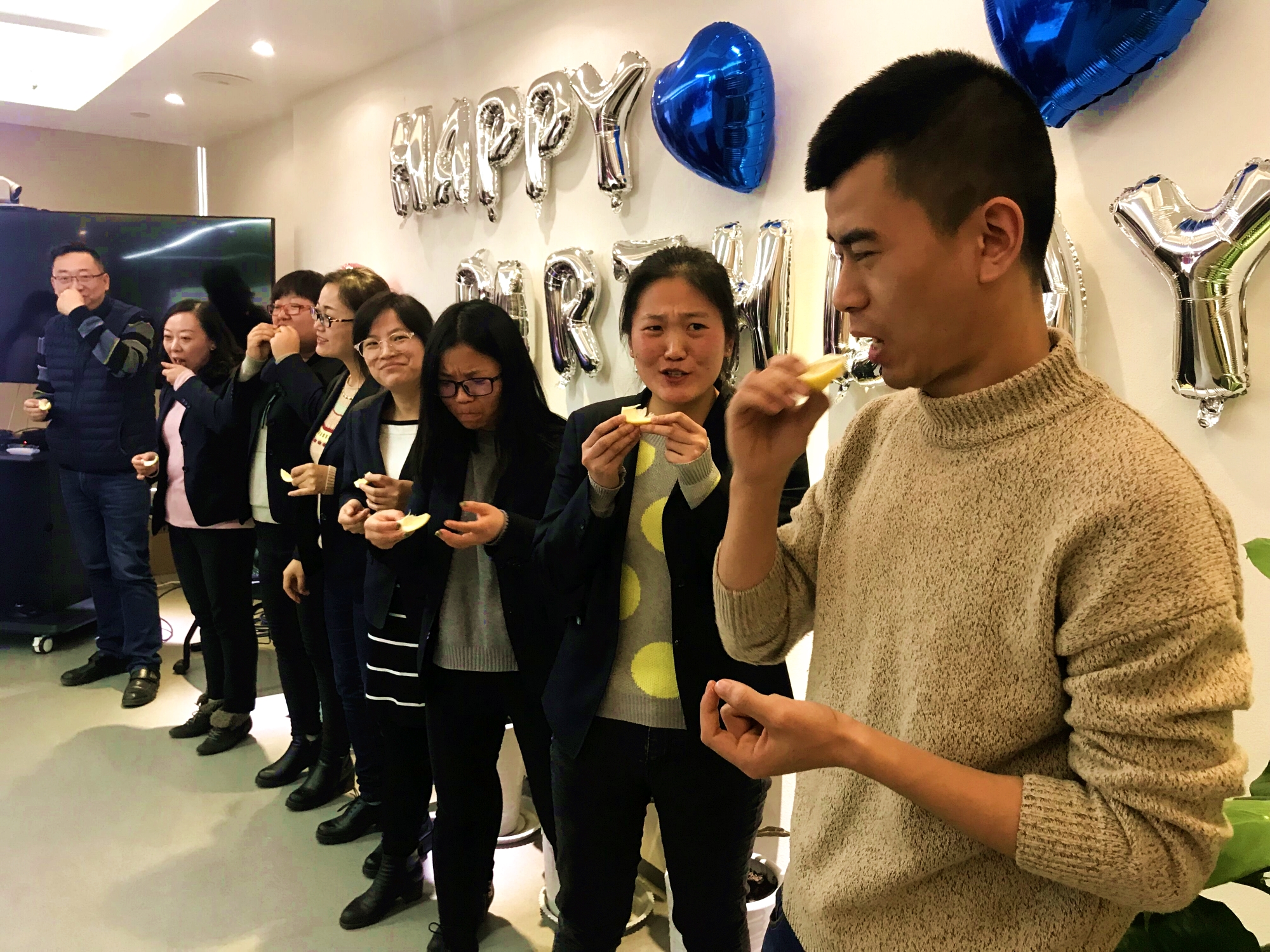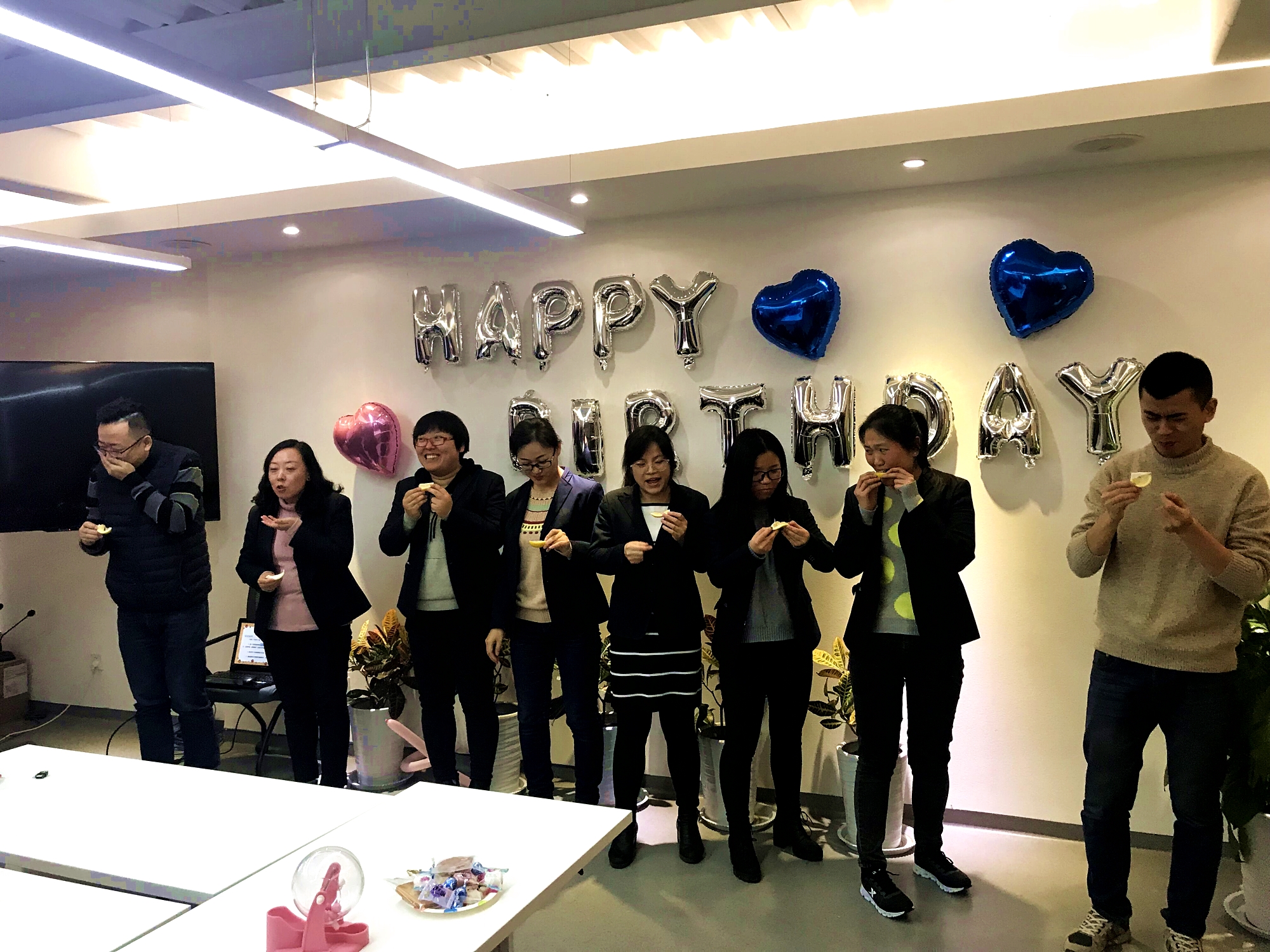 隨后大家踴躍參加了“你來比劃我來猜”小游戲,這個游戲考驗了員工之間的默契。大家聚在一起聽著歡樂歌曲,盡情地玩游戲,獲勝的小組獲得了一份紀(jì)念品,失敗小組則接受了吃檸檬的殘酷懲罰。小伙伴們的精彩表演以及生動好玩的互動游戲都營造出了歡樂的氛圍,整個生日會驚喜連連,笑聲不斷。