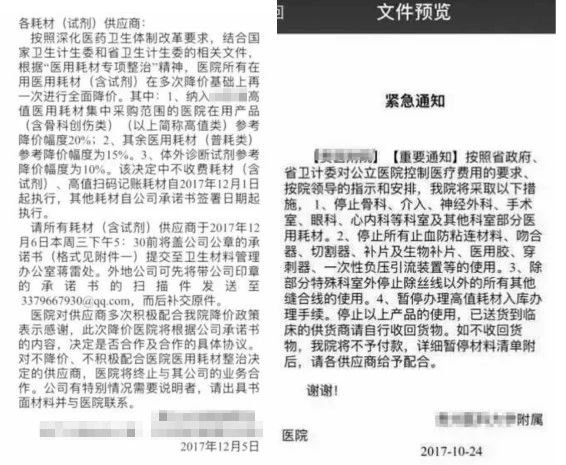 12月21日,湖北省某三甲醫(yī)院向各科室下發(fā)兩條消息,其中一條要求43個品種當(dāng)天晚上立即停用,另外一條則是提示18個品種用完后不再采購。