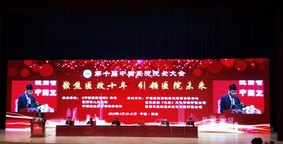 2019年4月19日至21日,第十屆中國(guó)醫(yī)院院長(zhǎng)大會(huì)在古城西安陜西賓館召開,本次大會(huì)由《中國(guó)醫(yī)院管理》雜志、陜西省人民醫(yī)院、中國(guó)衛(wèi)生質(zhì)量管理雜志社共同主辦,《中國(guó)醫(yī)院管理》雜志理事會(huì)秘書處、京龍康盛(北京)文化傳媒有限公司、陜西艾美薇藝術(shù)文化傳媒有限公司承辦。我公司作為大會(huì)支持單位參會(huì)。