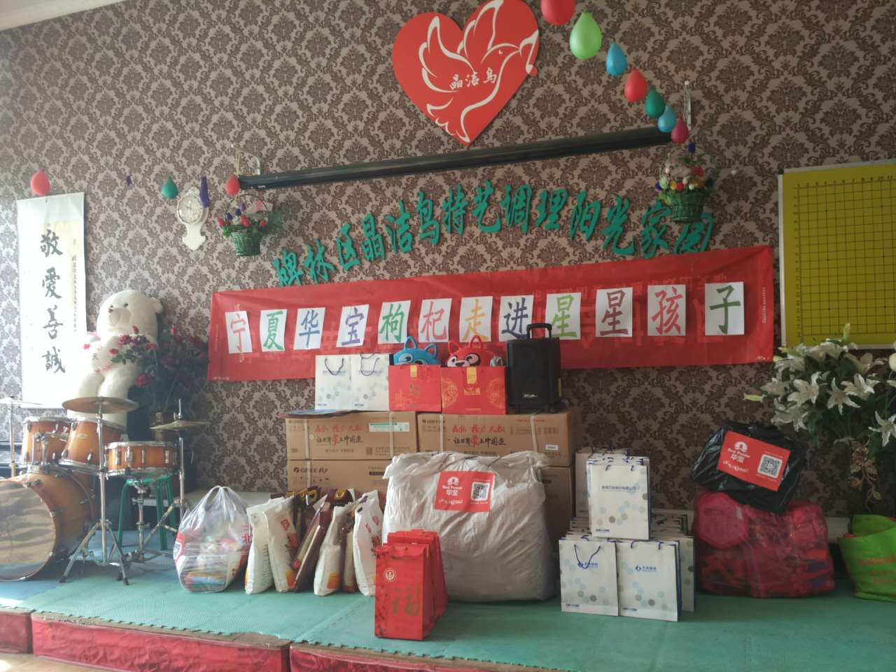 2017年4月15日,寧夏華寶枸杞產(chǎn)業(yè)有限公司主辦了“走進(jìn)星星的孩子,關(guān)注自閉癥兒童”活動(dòng),陜西方舟制藥有限公司積極響應(yīng)號(hào)召。接到活動(dòng)通知,方舟制藥的同事們積極參與,紛紛捐款捐物,我們也為他們準(zhǔn)備了牙刷、牙膏、毛巾、潤(rùn)膚乳一些日常生活用品。