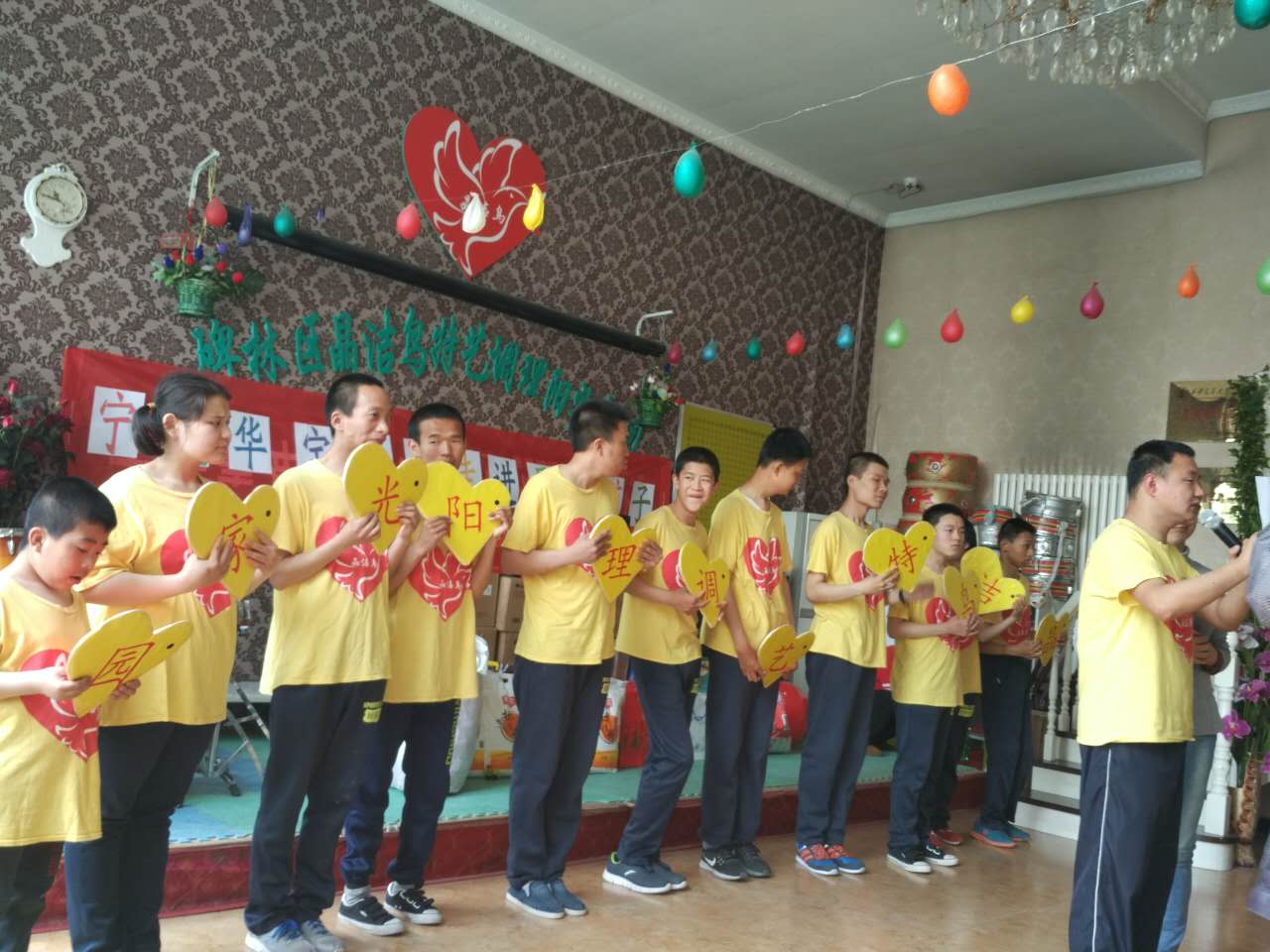 早上9:00華寶公司和方舟制藥公司的同事們來(lái)到“晶潔鳥(niǎo)陽(yáng)光家園”——這是一所非企業(yè)殘障人士服務(wù)機(jī)構(gòu),主要服務(wù)對(duì)象為10至40歲的智障人士,現(xiàn)有教職員工12余人,40余個(gè)志愿者團(tuán)隊(duì),100余個(gè)網(wǎng)絡(luò)支持群。是以訓(xùn)練、托養(yǎng)為主,針對(duì)每個(gè)不同特點(diǎn)的心智障礙人士,設(shè)置不同的方案,使這些特殊的孩子逐步能夠有能力融入社會(huì),自主生存,10:00活動(dòng)正式開(kāi)始,孩子們?cè)诩议L(zhǎng)和老師們的帶領(lǐng)下來(lái)到活動(dòng)地點(diǎn),為大家唱歌、跳舞、雖然孩子們開(kāi)始的時(shí)候?qū)δ吧擞行┑钟|,但在交流一段時(shí)間之后,也慢慢融入到了我們當(dāng)中,氣氛非常愉快,笑聲不斷。在一片歡笑聲中,這次活動(dòng)圓滿結(jié)束,同時(shí)我們借助西安電視臺(tái)新聞一臺(tái)、陜西衛(wèi)視、三秦都是報(bào)、陜西日電報(bào)、今日頭條、騰訊視頻、優(yōu)酷視頻等多家媒體向外界宣傳“不排斥、不歧視、關(guān)愛(ài)自閉癥兒童,使更多的愛(ài)心人士加入到關(guān)愛(ài)自閉癥兒童活動(dòng)中。