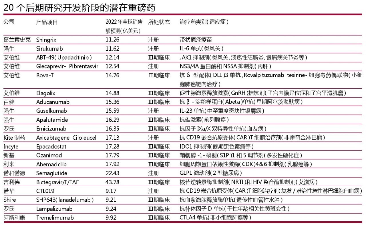 20個進入后期研究階段的潛在重磅藥