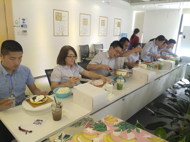 行政人事部在為大家送上精致禮物的同時(shí),也很貼心地為大家準(zhǔn)備了下午茶,奶油的細(xì)膩鮮香搭配著冰爽口感的咖啡,是夏天的味道~
