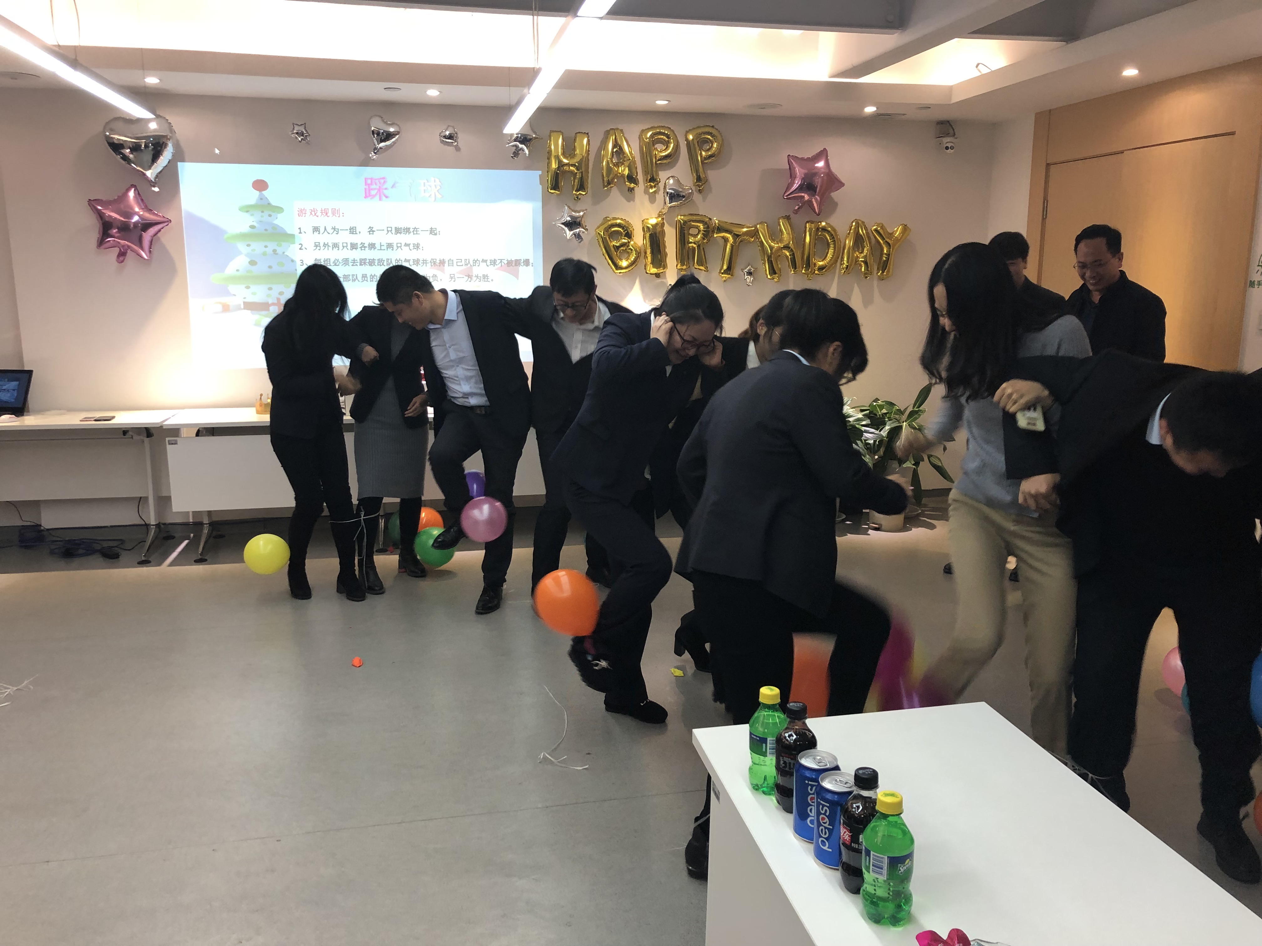 在熱鬧的氛圍中,大家進(jìn)行了的“踩氣球”游戲,同事們各自分成兩兩一組,通過默契的配合,互相角逐,在愉快的游戲中,卸下了一身的疲憊。