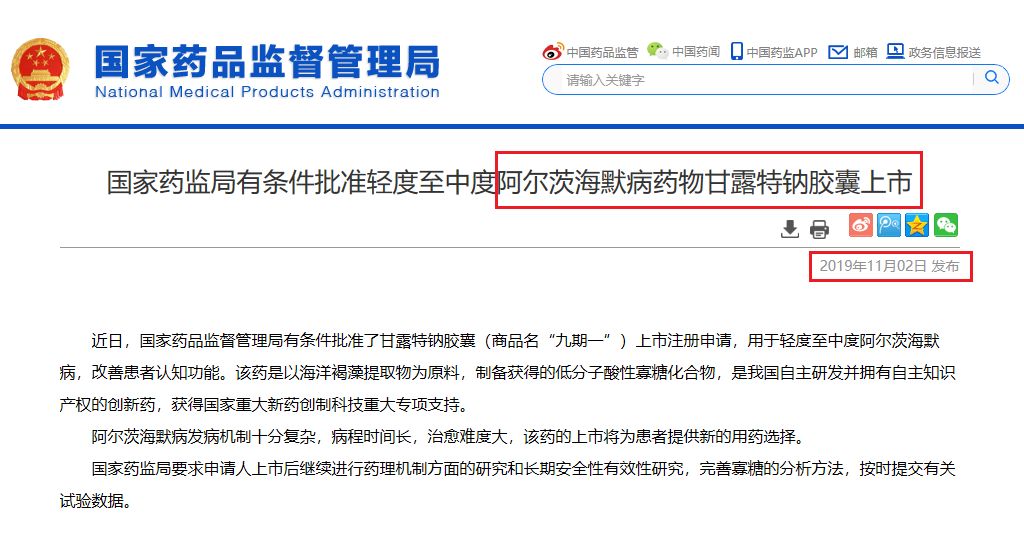 2019年11月2日,各大朋友圈、網(wǎng)絡(luò)平臺被一則“國家藥監(jiān)局有條件批準輕度至中度阿爾茨海默病藥物甘露特鈉膠囊上市”的消息瘋狂刷屏,備受藥界人士的關(guān)注,尤其是全球高達5000萬患者及其家屬,這是一款由中國科學(xué)院上海藥物研究所耿美玉研究員領(lǐng)導(dǎo)的研究團隊,歷時22年,在中科院上海藥物研究所、中國海洋大學(xué)與上海綠谷制藥有限公司共同努力研發(fā)成功的原創(chuàng)1類新藥,這是中國原創(chuàng)、國際首個靶向腦-腸軸的阿爾茨海默病治療的1類新藥,填補了阿爾茨海默病領(lǐng)域17年無新藥上市的空白,本文為大家梳理了廣大老年癡呆患者及家屬五個最關(guān)心中國造抗老年癡呆新藥的問題。