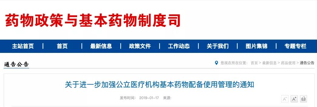 2019年1月17日,國家衛(wèi)健委發(fā)布《關(guān)于進一步加強公立醫(yī)療機構(gòu)基本藥物配備使用管理的通知》提出,組織開展基本藥物制度綜合試點。