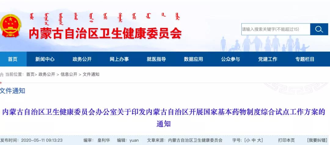 今日,內(nèi)蒙古自治區(qū)發(fā)布《內(nèi)蒙古自治區(qū)開展國家基本藥物制度綜合試點工作方案的通知》提到將促進上下級機構(gòu)用藥銜接。